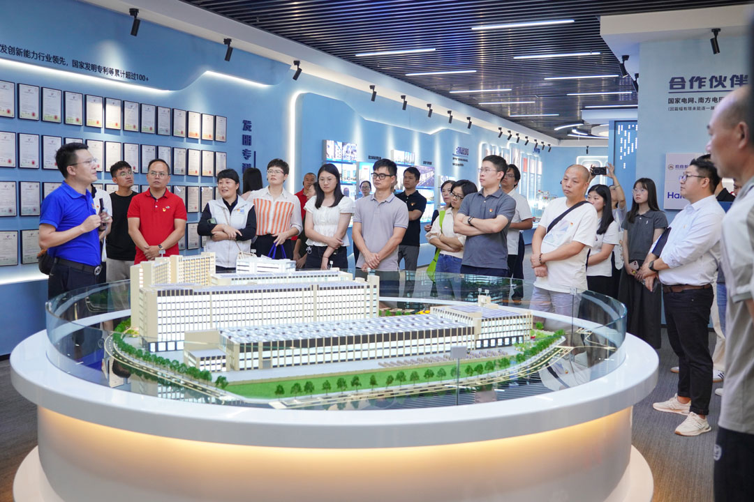 隨后,在楊彥等的陪同下,王奇一行來(lái)到民興科技展廳參觀,詳細(xì)了解企業(yè)發(fā)展歷程、產(chǎn)業(yè)布局、科技創(chuàng)新、企業(yè)文化、社會(huì)責(zé)任等。每到一處,王奇等都認(rèn)真聆聽講解、頻頻拍照記錄,在觀摩中領(lǐng)略企業(yè)獨(dú)特風(fēng)采,在深入交流中啟發(fā)創(chuàng)新思路。特別是移步至發(fā)明專利墻展示區(qū)、運(yùn)營(yíng)大數(shù)據(jù)展示區(qū)時(shí),大家紛紛對(duì)民興在科技創(chuàng)新和智能化管理等方面所取得的成就點(diǎn)贊。