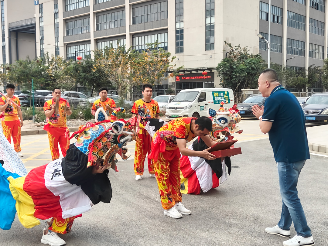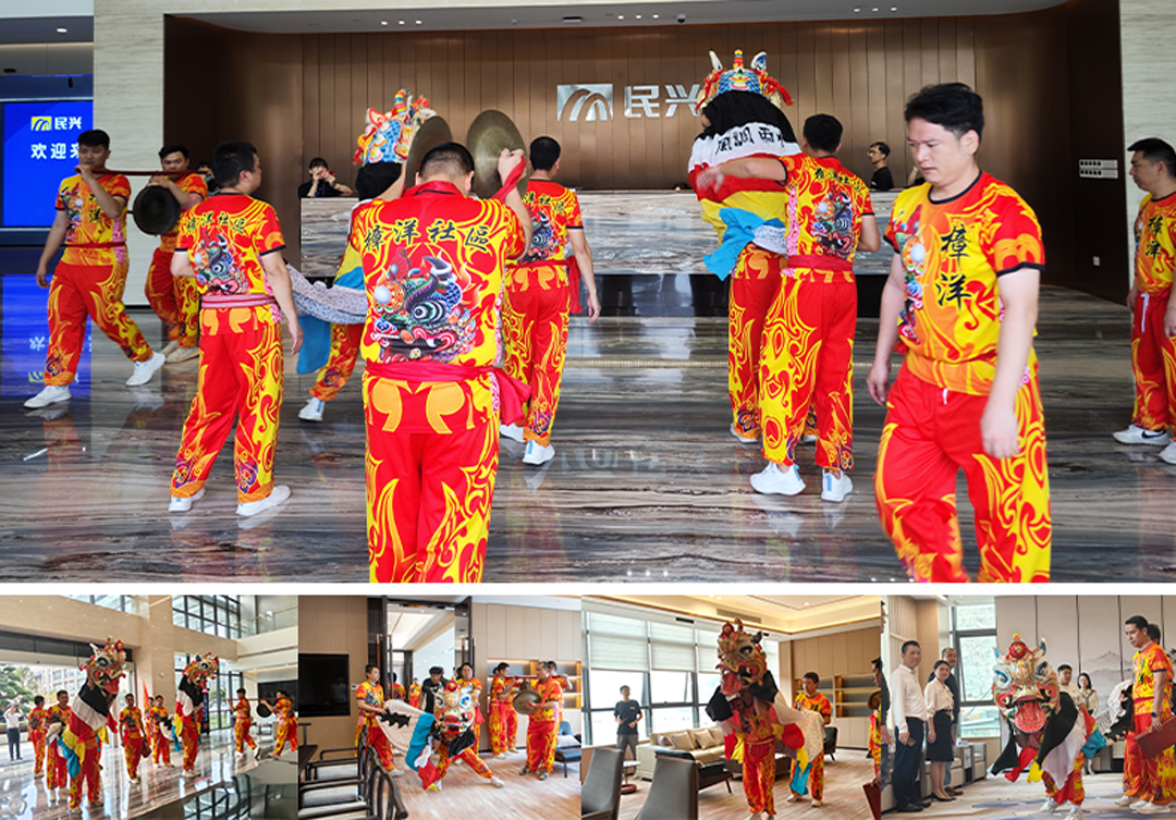 當日下午1點,民興電纜樟木頭新總部基地鑼鼓喧天,樟木頭鎮(zhèn)樟洋社區(qū)麒麟隊正前來“參門”。只見伴隨著鏗鏘有力的鑼鼓聲,兩只金頭大麒麟腳踏“祥云”靈動登場,麒麟從企業(yè)大門到各個辦公室逐一進行參拜,活靈活現(xiàn)的舞姿,一舞一動都以喜慶歡騰的形式迎祥納福。麒麟所到之處,必定帶來吉祥和好運,寓意新的一年民興將取得更大的發(fā)展成就、鴻運連連,也代表著樟木頭鎮(zhèn)對民興最美好的新年祝愿!
