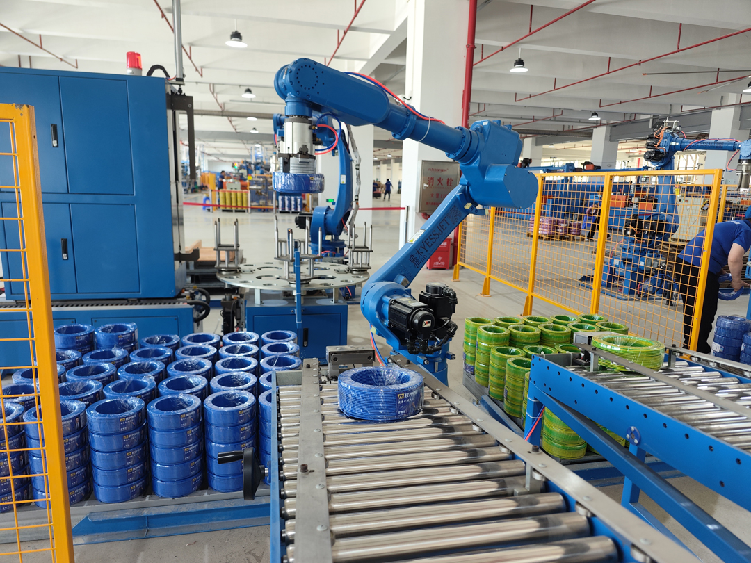 民興電纜堅持信息化、數(shù)字化驅(qū)動,構(gòu)建先進完善的智能制造體系,推動產(chǎn)業(yè)結(jié)構(gòu)優(yōu)化升級。自研MES制造執(zhí)行系統(tǒng)、QMS質(zhì)量管理系統(tǒng)等,貫穿產(chǎn)品設(shè)計、制造、檢驗、質(zhì)量管理、營銷、服務(wù)全過程信息化管控,實現(xiàn)人、機、資源、信息協(xié)同,啟用全自動化機械手臂,全面提升生產(chǎn)制造水平。