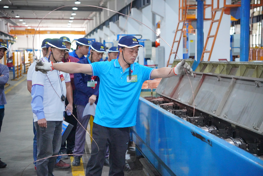 本次競賽采用個人賽形式,分為初賽理論考核與決賽實操比拼兩大環(huán)節(jié)。其中,初賽以電線電纜制造工(拉制工)國家職業(yè)技能三級/高級工為競賽標準,融入行業(yè)前沿技術(shù)與創(chuàng)新知識,全面考察選手對技術(shù)基礎(chǔ)知識、標準產(chǎn)品性能指標、測量方法等的掌握情況。決賽對選手的技能要求全面而精準,核心在于通過塑性加工技術(shù)實現(xiàn)金屬導(dǎo)體線材的高效、穩(wěn)定生產(chǎn),確保線材的精度與一致性。