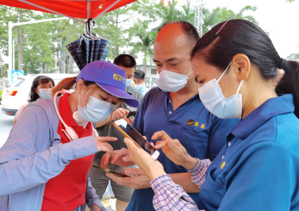 “謝謝,多虧了你們幫忙,要不然真不知如何是好!”6月8日晚9點,在位于宏盈工業(yè)區(qū)停車場處的新冠病毒核酸篩查采集點,65歲的黃大伯完成核酸采樣后連忙跑到入口信息登記處向志愿者阿川鞠躬道謝。原來,黃大伯當(dāng)晚只身前來核檢,使用的是老人機,又不懂操作,志愿者阿川了解了老人的不便后,主動掏出自己的手機幫助老人掃碼登記,耐心講解核酸檢測流程,一步步引導(dǎo),直到核酸采樣完成。“這種情況還蠻多的,我們希望能夠通過自己的力量幫助到他人,傳遞社會溫暖,也算是為抗擊疫情貢獻(xiàn)一份微薄之力?!?